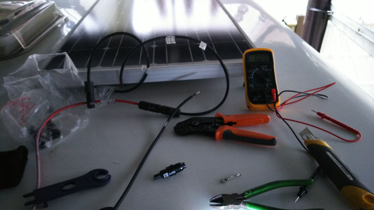 今日は朝から曇っていて薄暗く、ソ-ラ-パネル配線の修理にはうってつけ日和(笑)