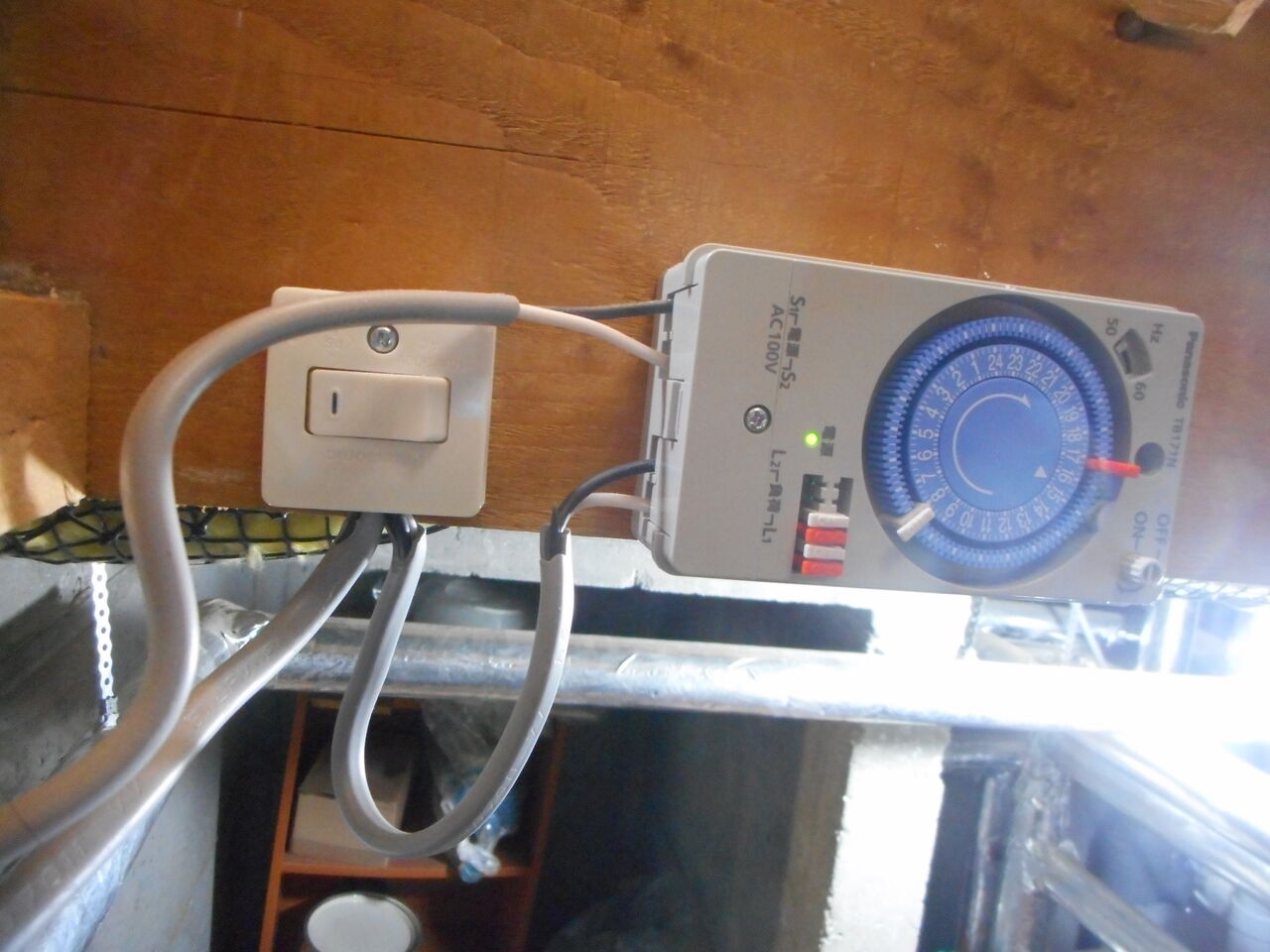 タイムスイッチは、常に通電されていて、左のSWでセントラルヒ-ティングのポンプが回り