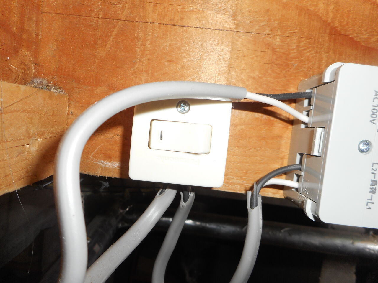スイッチに入る不思議な配線?スイッチで入り切りするのは黒線です。